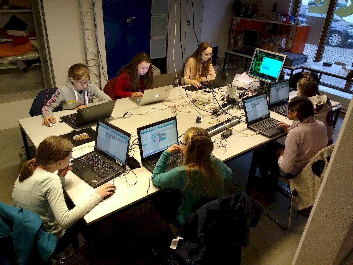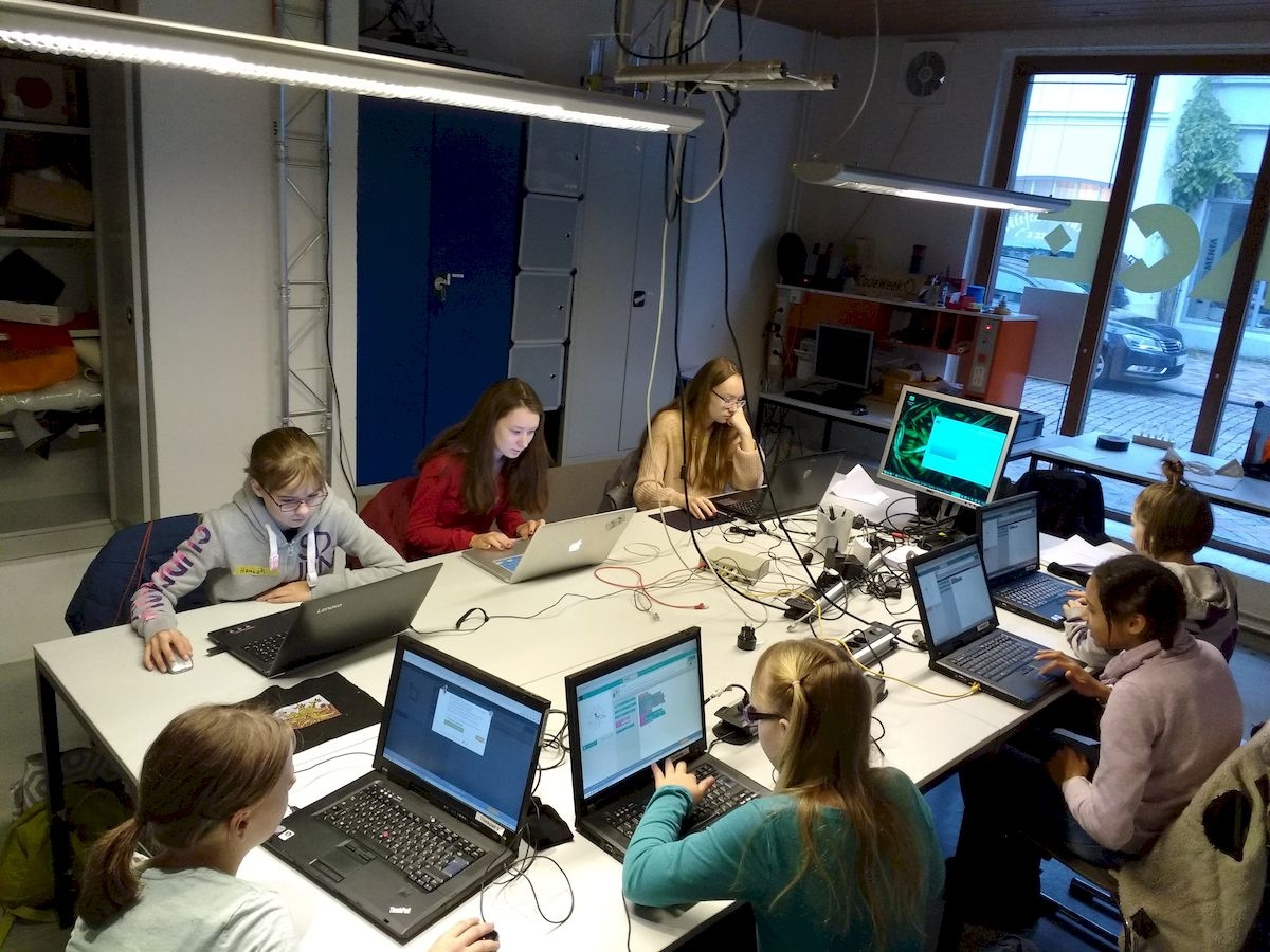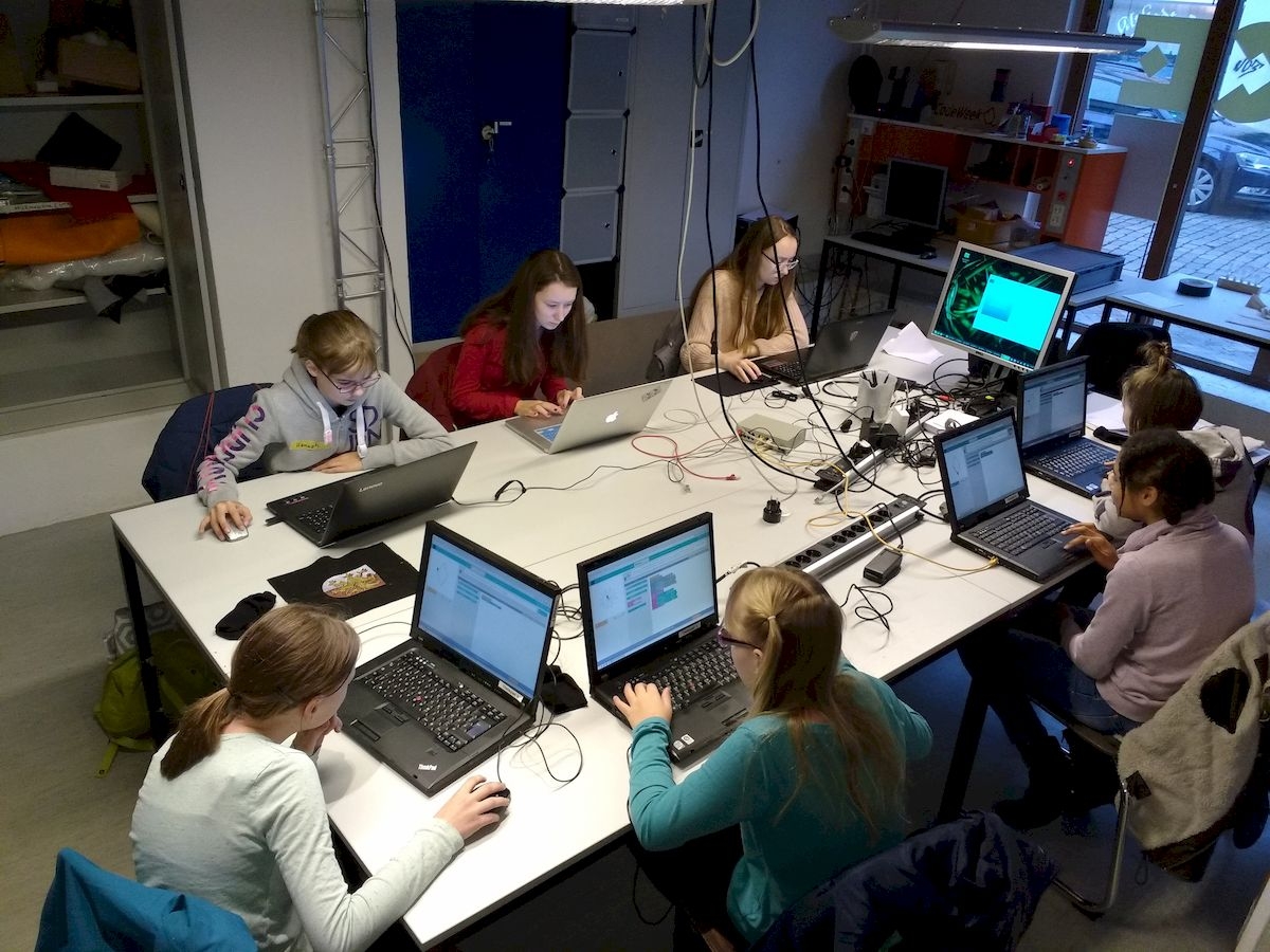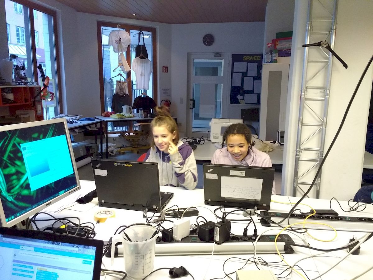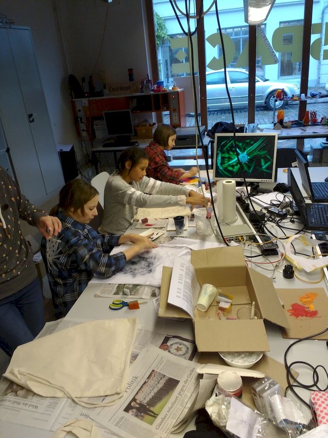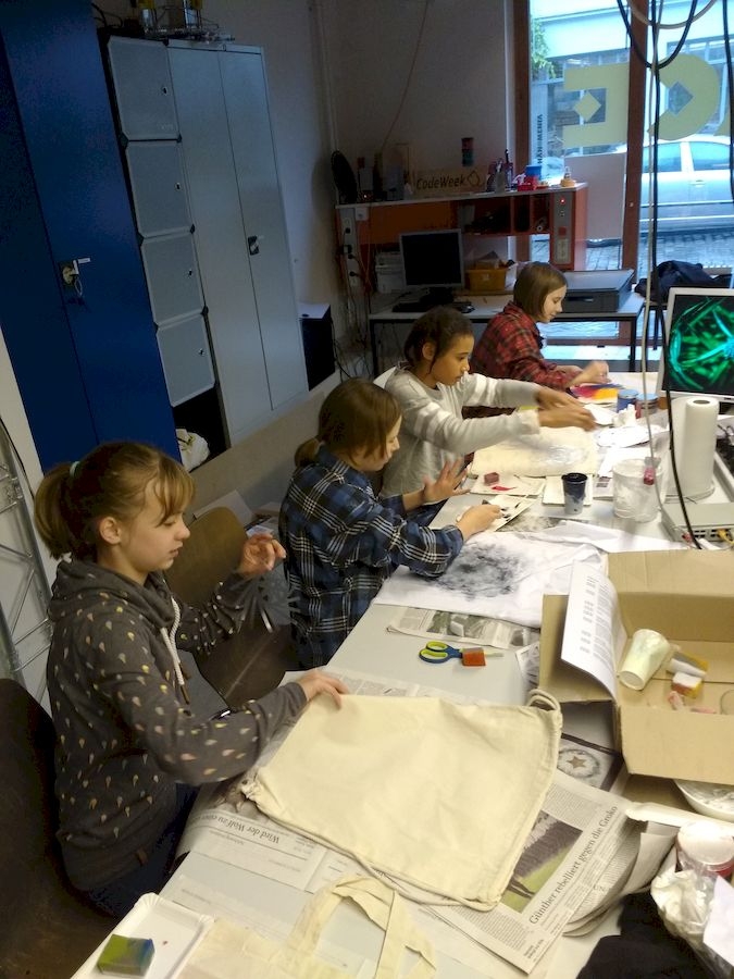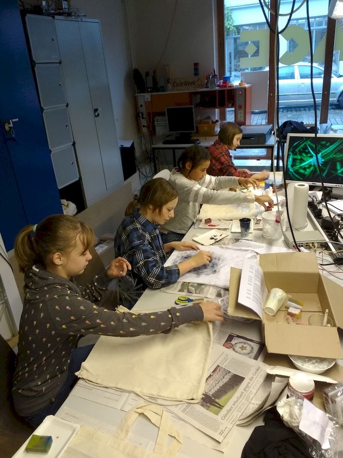 An zwei Wochenenden im Dezember fand dieses schöne Enrichmentangebot in der Phänomenta statt. Wir programmierten Mandalas und übertrugen sie auf Stofftaschen und T-Shirts.