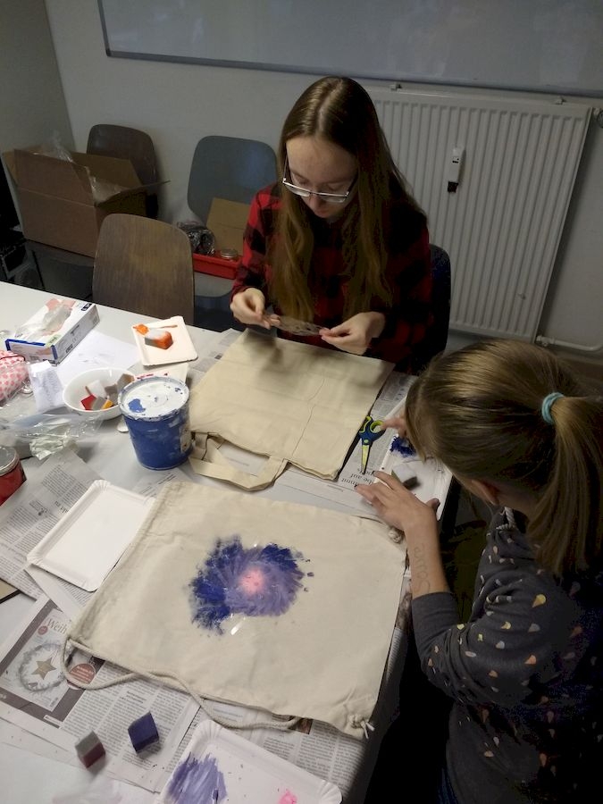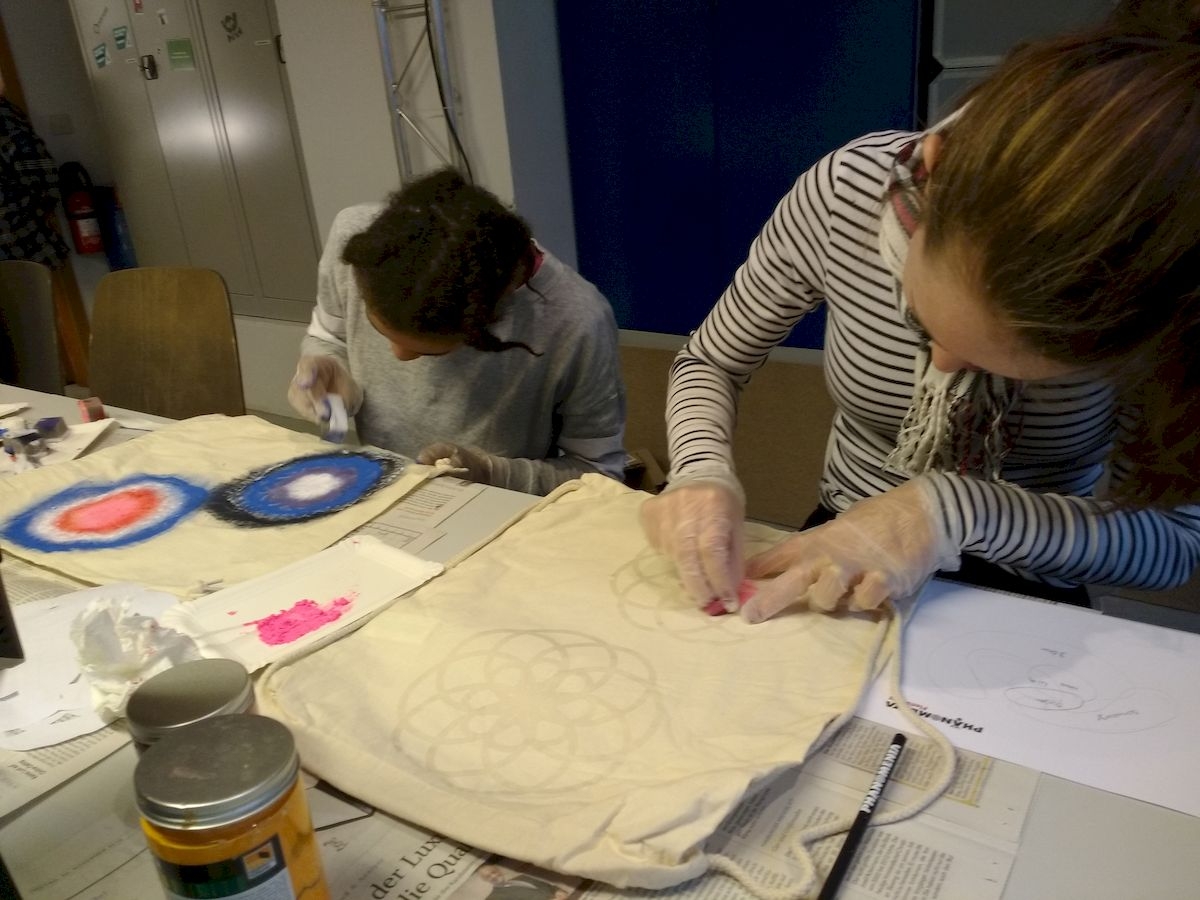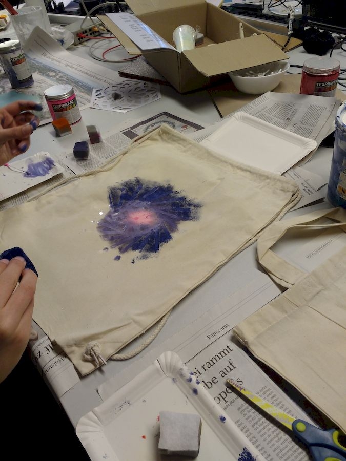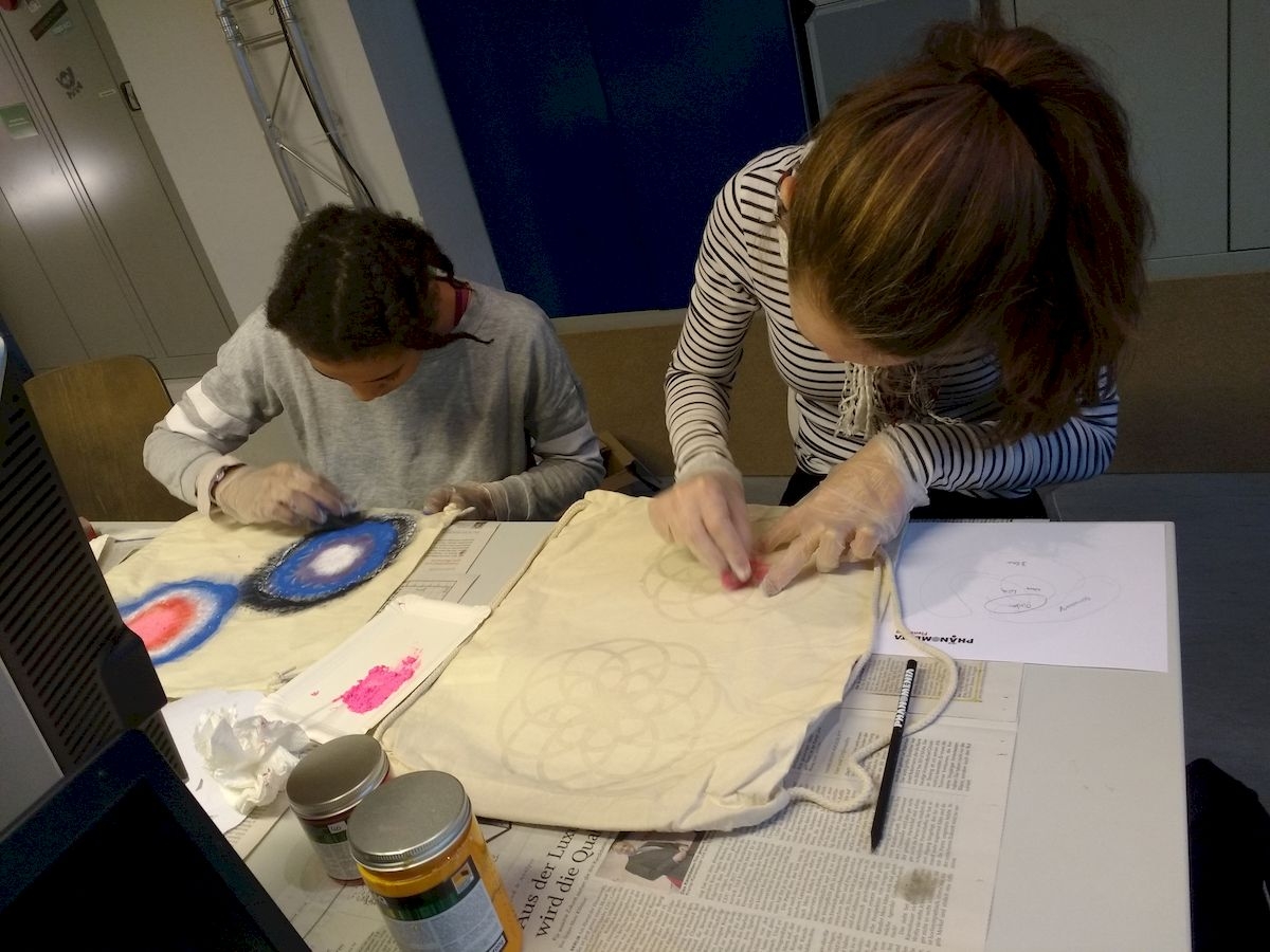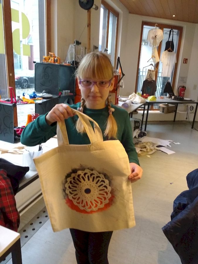 An zwei Wochenenden im Dezember fand dieses schöne Enrichmentangebot in der Phänomenta statt. Wir programmierten Mandalas und übertrugen sie auf Stofftaschen und T-Shirts.